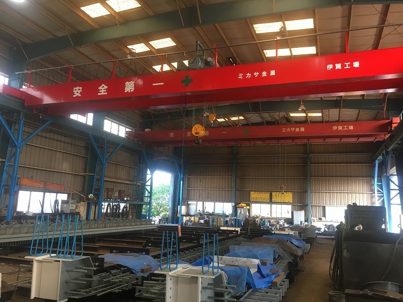 伸縮装置の大型化に対応するため伊賀工場のC棟に10/3トン天井クレーンを新たに1基増設しました。